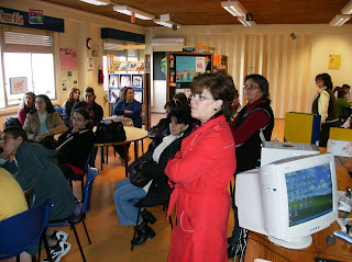 E... tivemos como convidadas das professoras e destes alunos do Ensino Especial, uma turma de senhoras da A.D.N., do curso do serviço social.